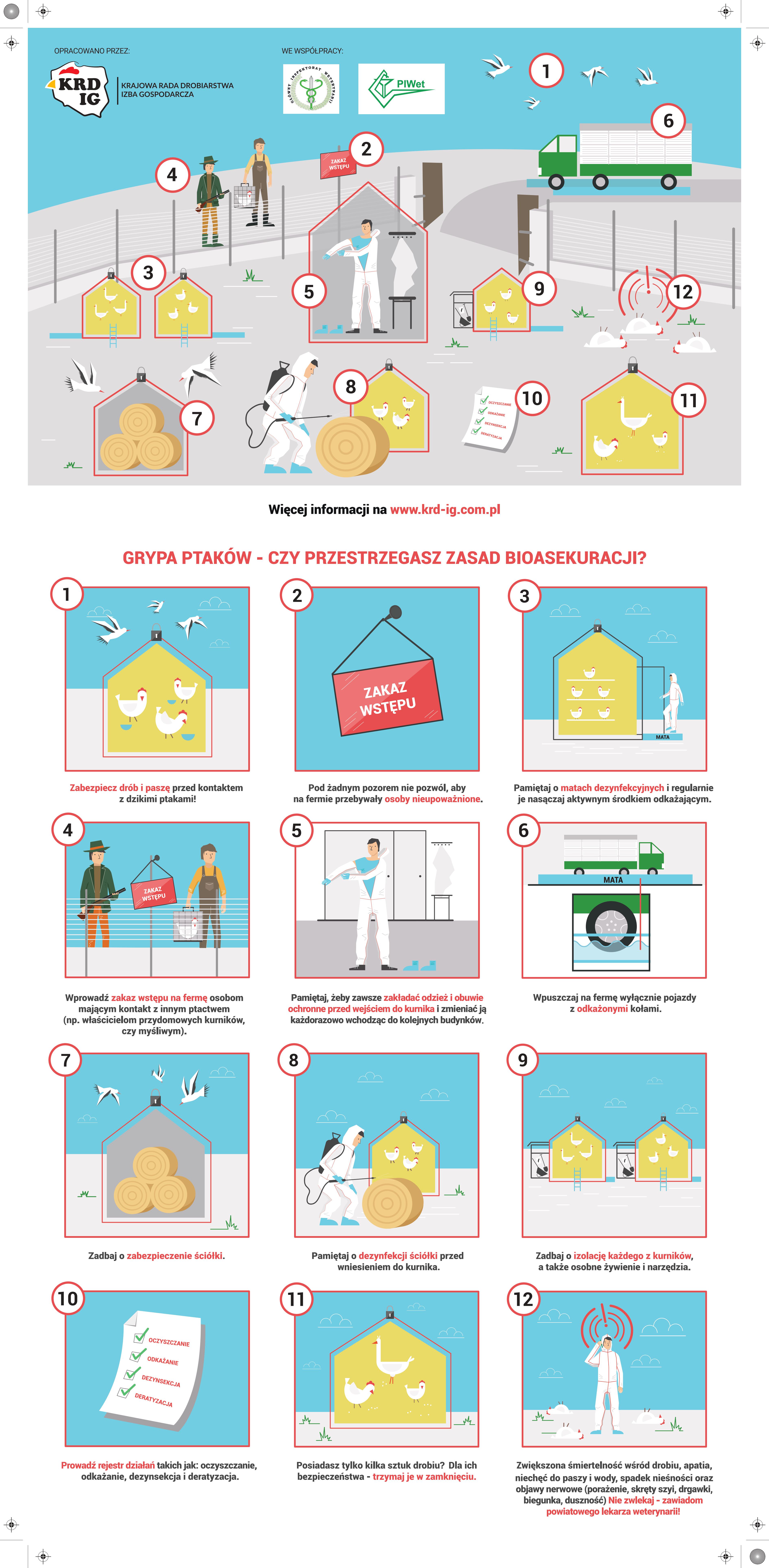 W związku z okresem jesiennym i nasiloną migracją sezonową dzikiego ptactwa, mając na uwadze zagrożenie wystąpienia wysoce zjadliwej grypy ptaków (HPAI) oraz rzekomego pomoru drobiu (ND), Powiatowy Lekarz Weterynarii w Nakle Nad Notecią przypomina o rygorystycznym przestrzeganiu zasad bioasekuracji, realnie minimalizujących ryzyko wystąpienia choroby.